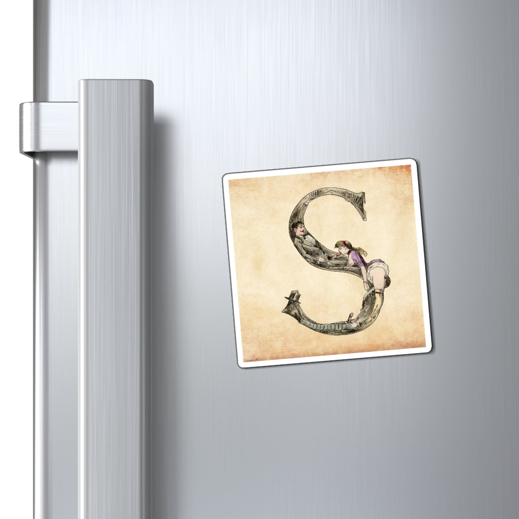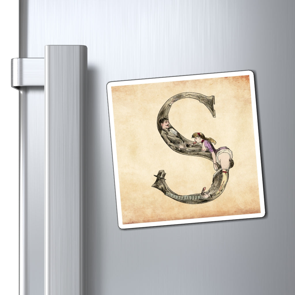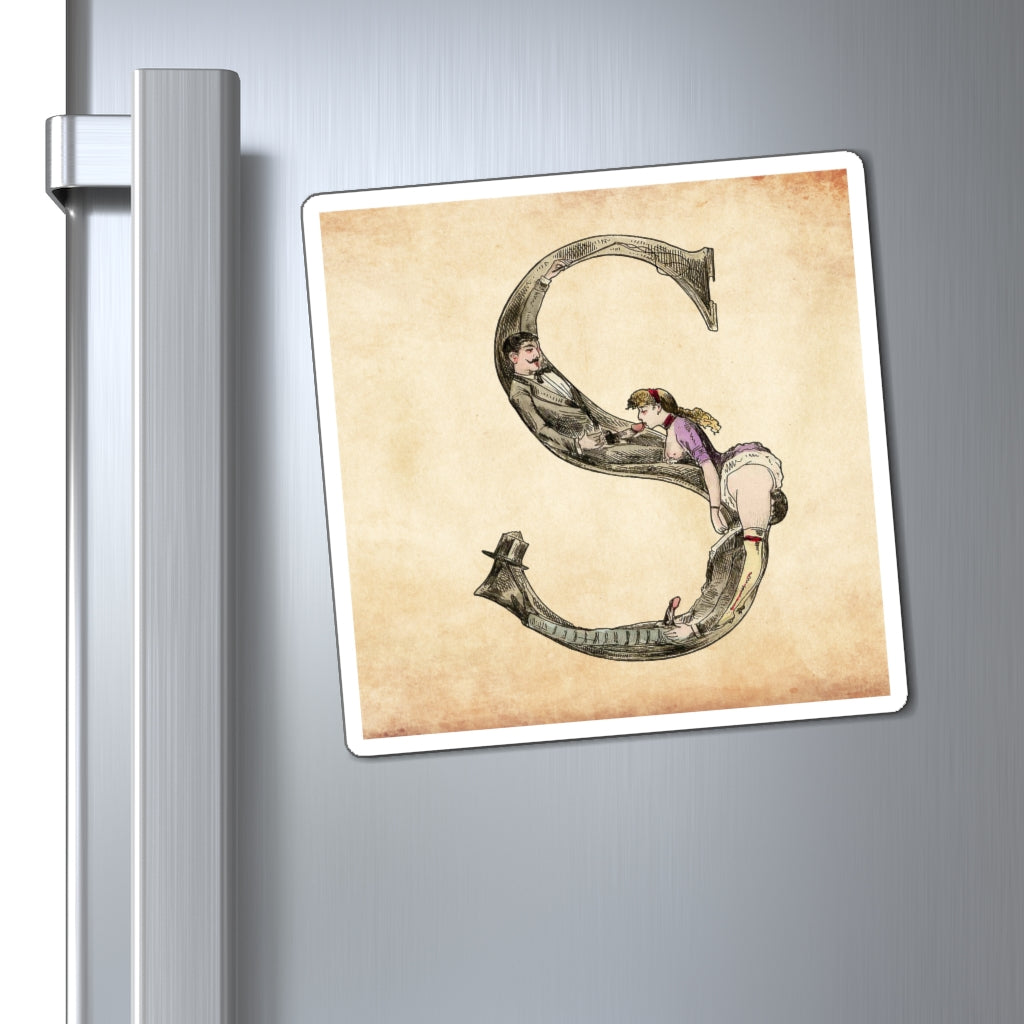 Magnet featuring the letter S from the Erotic Alphabet, 1880, by French artist Joseph Apoux (1846-1910). -