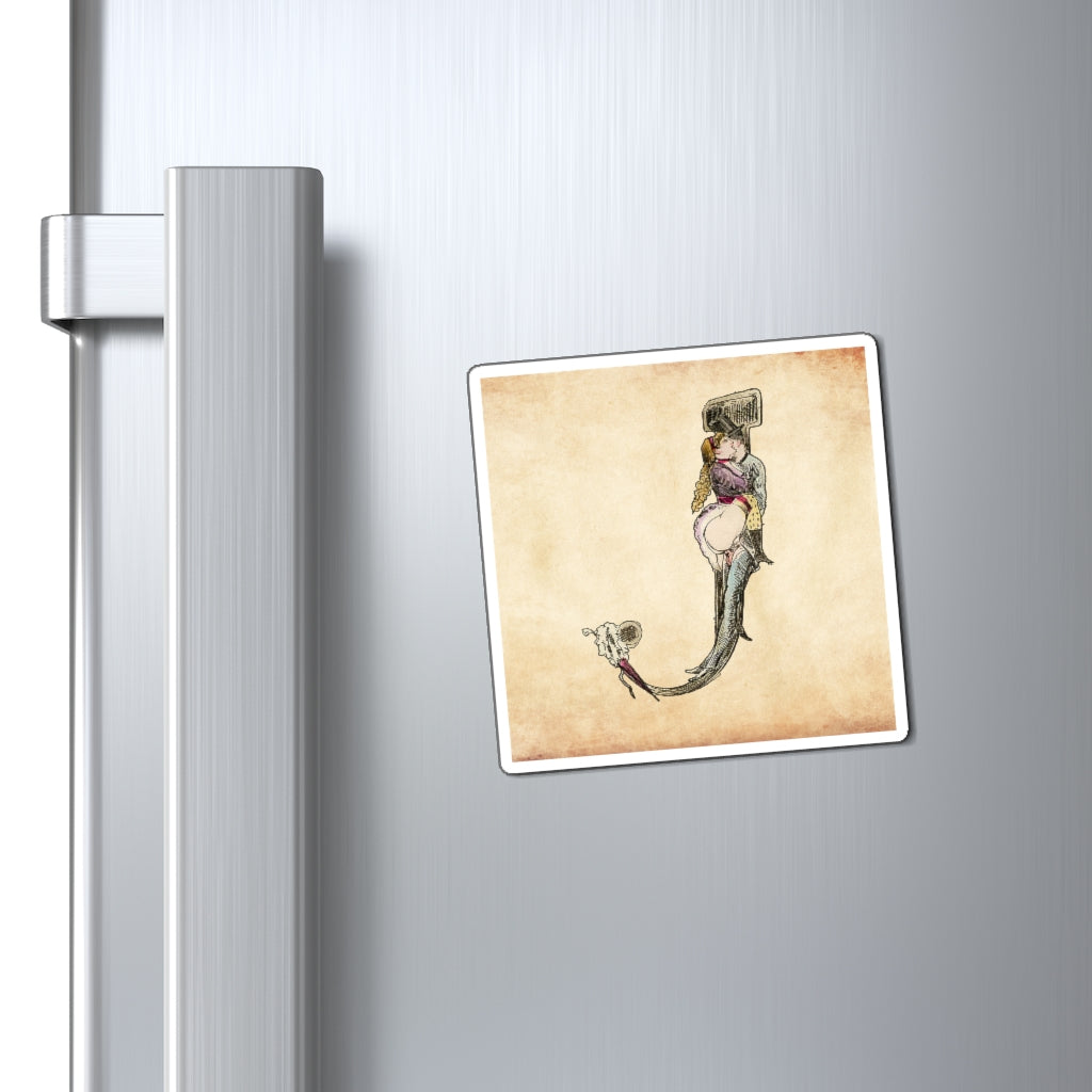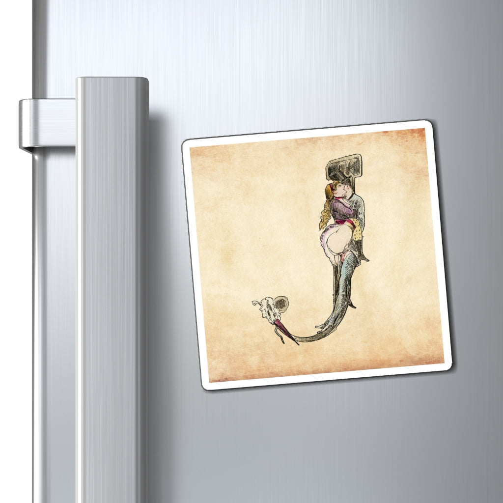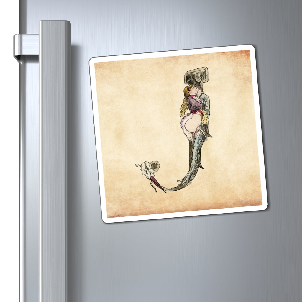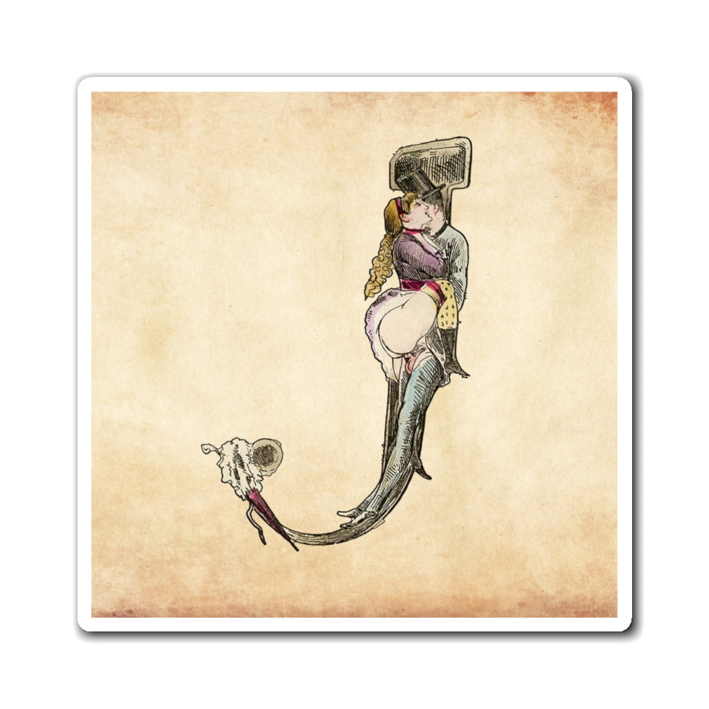 Magnet featuring the letter J from the Erotic Alphabet, 1880, by French artist Joseph Apoux (1846-1910). -