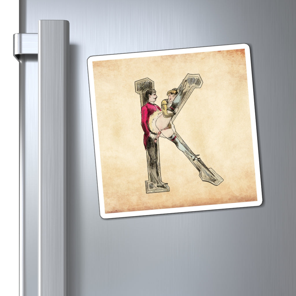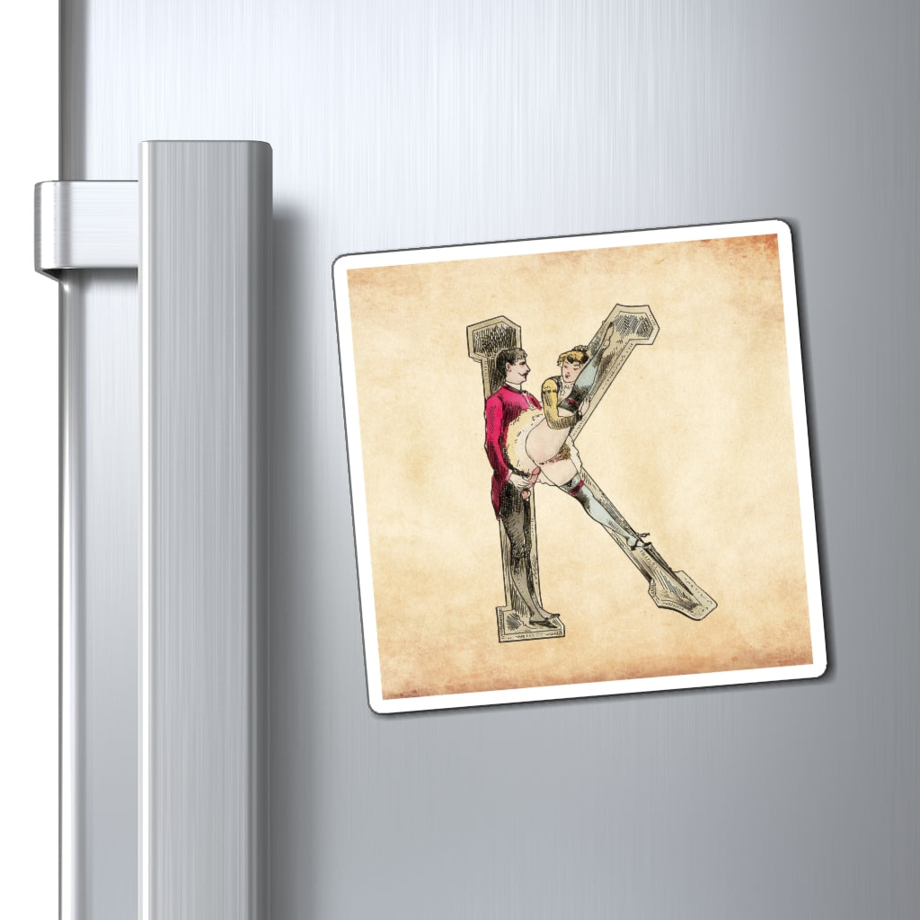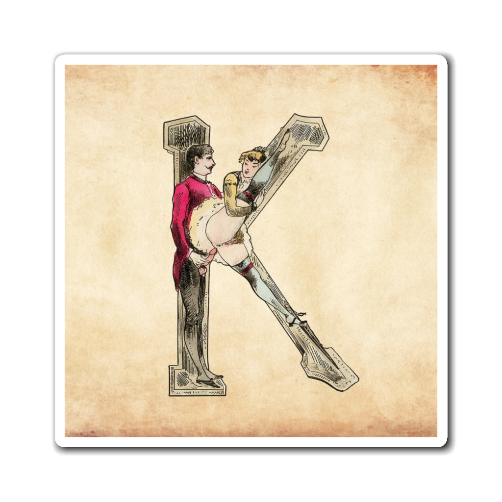 Magnet featuring the letter K from the Erotic Alphabet, 1880, by French artist Joseph Apoux (1846-1910). -