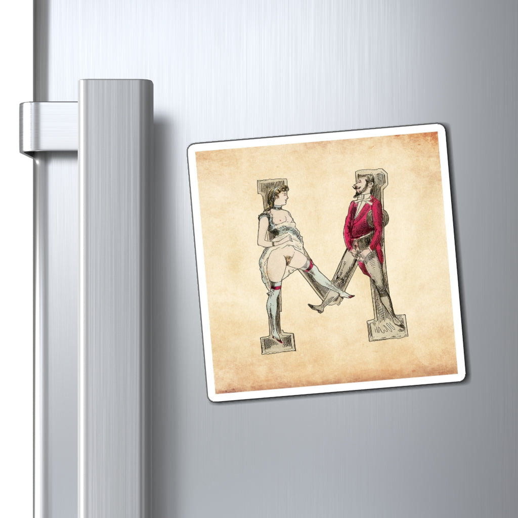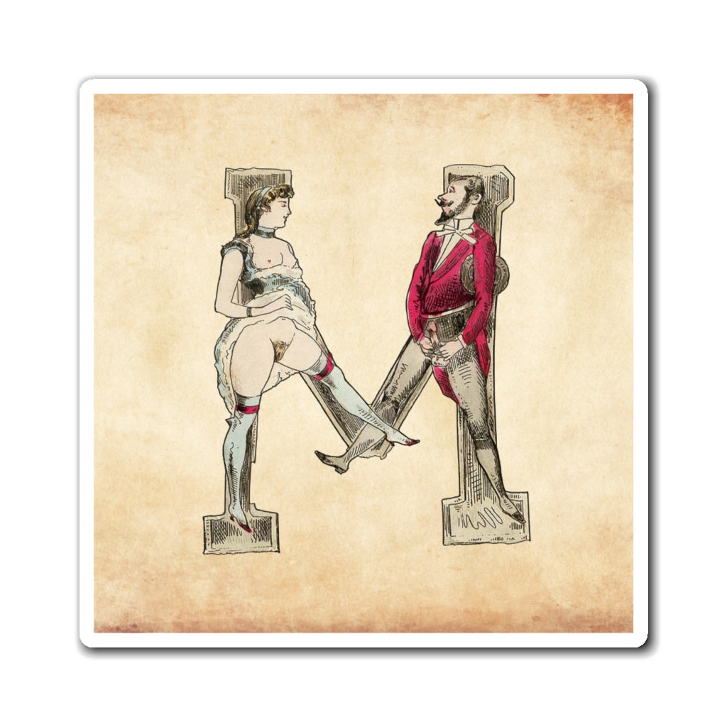 Magnet featuring the letter M from the Erotic Alphabet, 1880, by French artist Joseph Apoux (1846-1910). -
