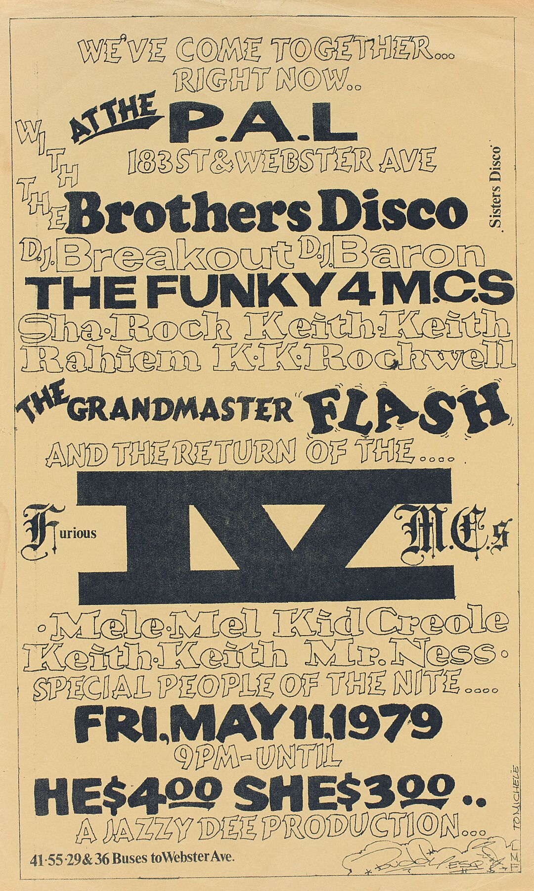 Lemoin Thompson (July 17, 1958 – January 31, 2014), known by the name Buddy Esquire, was the most well-known show flyer artist in the Bronx in the early days of hip-hop, from 1978 to 1982. He was self-taught and learned drawing and typography principles from books at his local library. Graffiti, Japanese anime, superhero comics, and Art Deco architecture were among his influences. Grandmaster Flash, Afrika Bambaataa, Kool Herc, the Funky 4 Plus 1, and the Cold Crush Brothers were among the hip-hop legends whose early performances were advertised on his flyers. In the late 1970s and early 1980s, Buddy Esquire's visual styles helped to set the tone for hip-hop. His flyers are some of the only primary materials relating to the earliest developments of what is now the world's most popular music genre, aside from their striking graphic elements. Many of his work used jukeboxes and historic theater marquees as inspiration. His work featured sharp chiaroscuro shapes as well as a playful tension between lettering, photographs, and decorations.