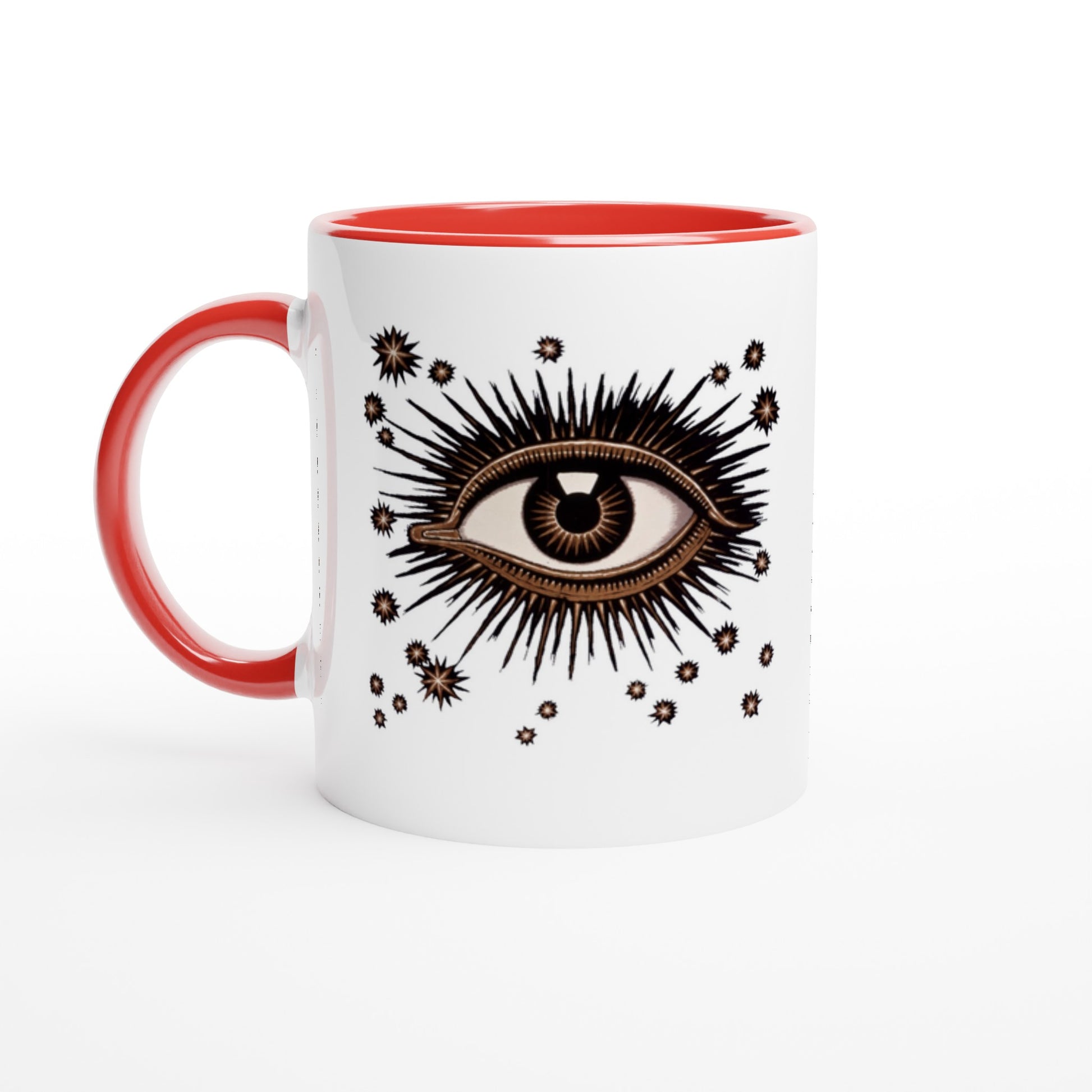 This beautiful ceramic mug is perfect for any event of the day. Your morning coffee, a hot chocolate, or any other hot beverage you enjoy. The mug is glossy white with a colored rim, inside, and handle. The prints come out beautifully and vividly on it. The print retains its quality and luster when used in both microwaves and the dishwasher.