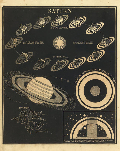 Saturn from Smith's Illustrated Astronomy by Asa Smith,1849 - Postcard