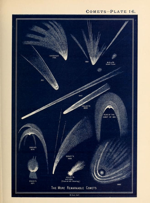 Plate 16. The more remarkable comets. A popular handbook and atlas of astronomy, 1891 - Postcard