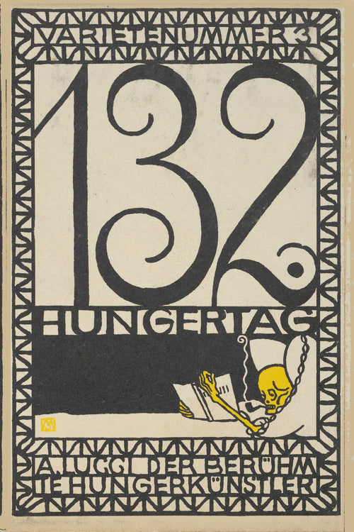 Variety Act 3 - 132nd Day of Fasting, A. Lucci the Famous Hunger Artist (Varietenummer 3- 132 Hungertag, A. Lucci der Berühmte Hungerkünstler) by Moriz Jung, 1907 - Postcard