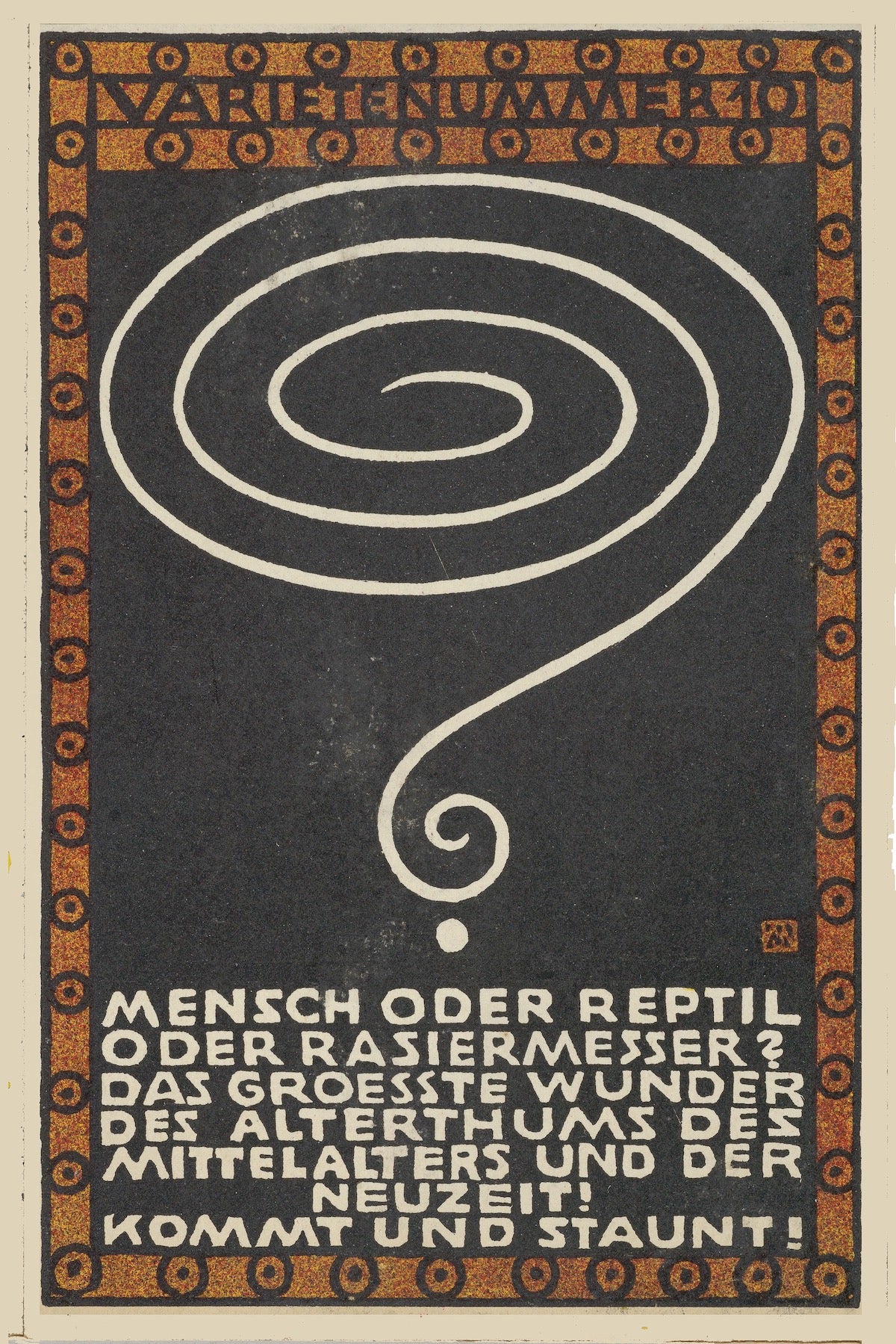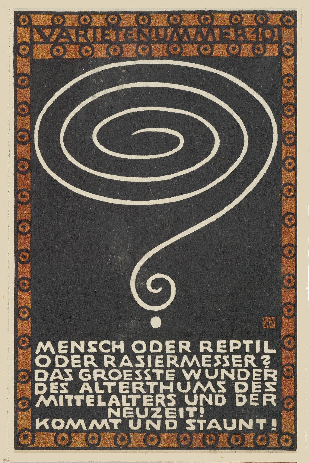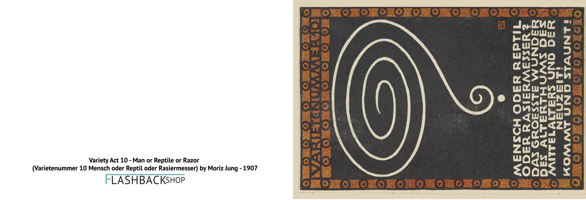 Variety Act 10 - Man or Reptile or Razor (Varietenummer 10 Mensch oder Reptil oder Rasiermesser) by Moriz Jung, 1907 - Postcard