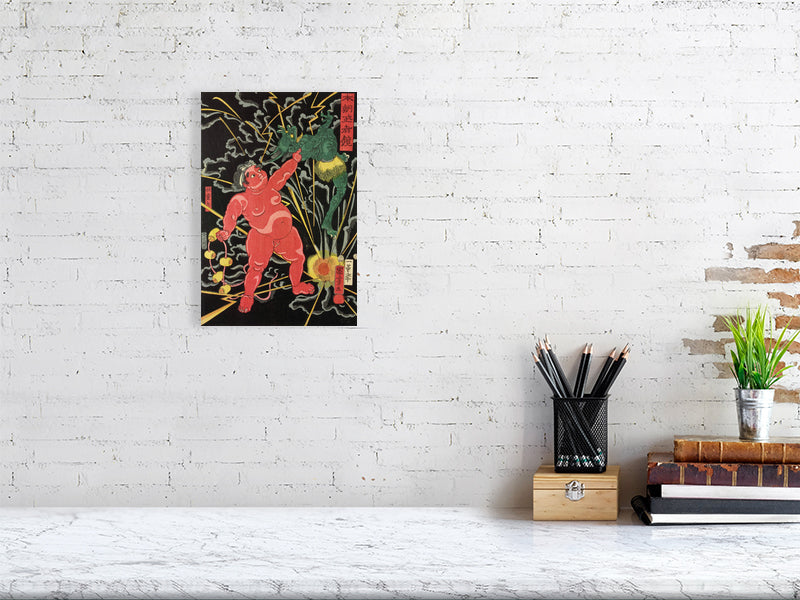 Kintaro agarrando a Raijin the Thundergod por Utagawa Kuniyoshi - 1855
