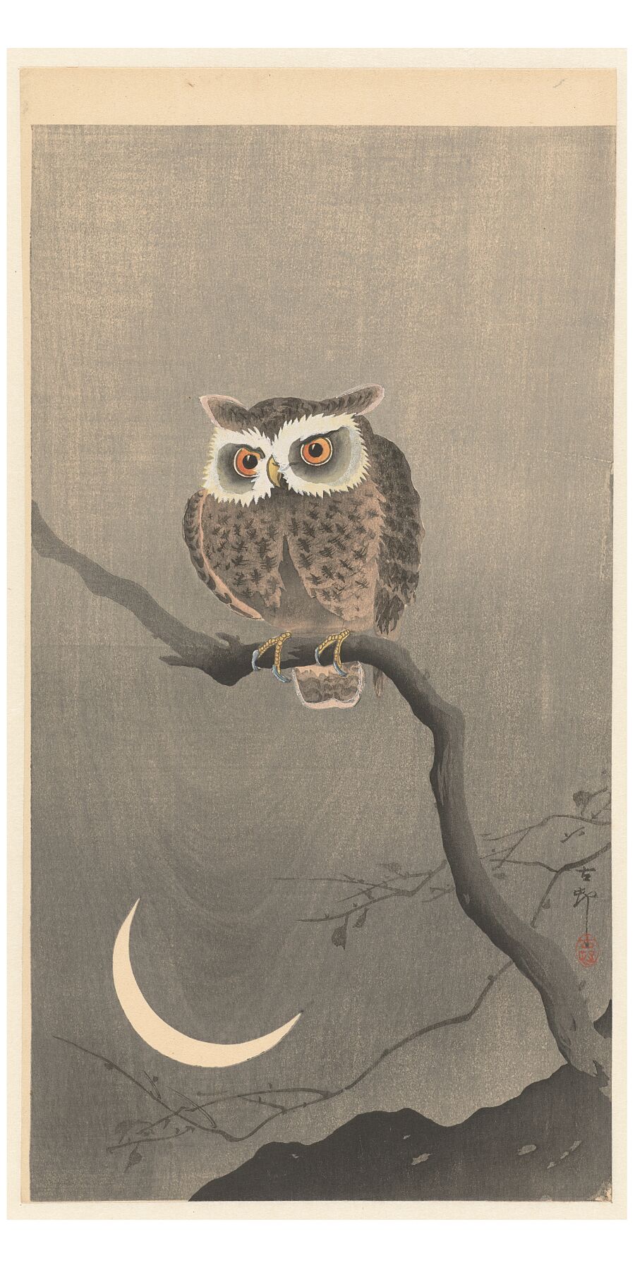 Búho chico en la rama de un árbol desnudo Ohara Koson - 1900-1930