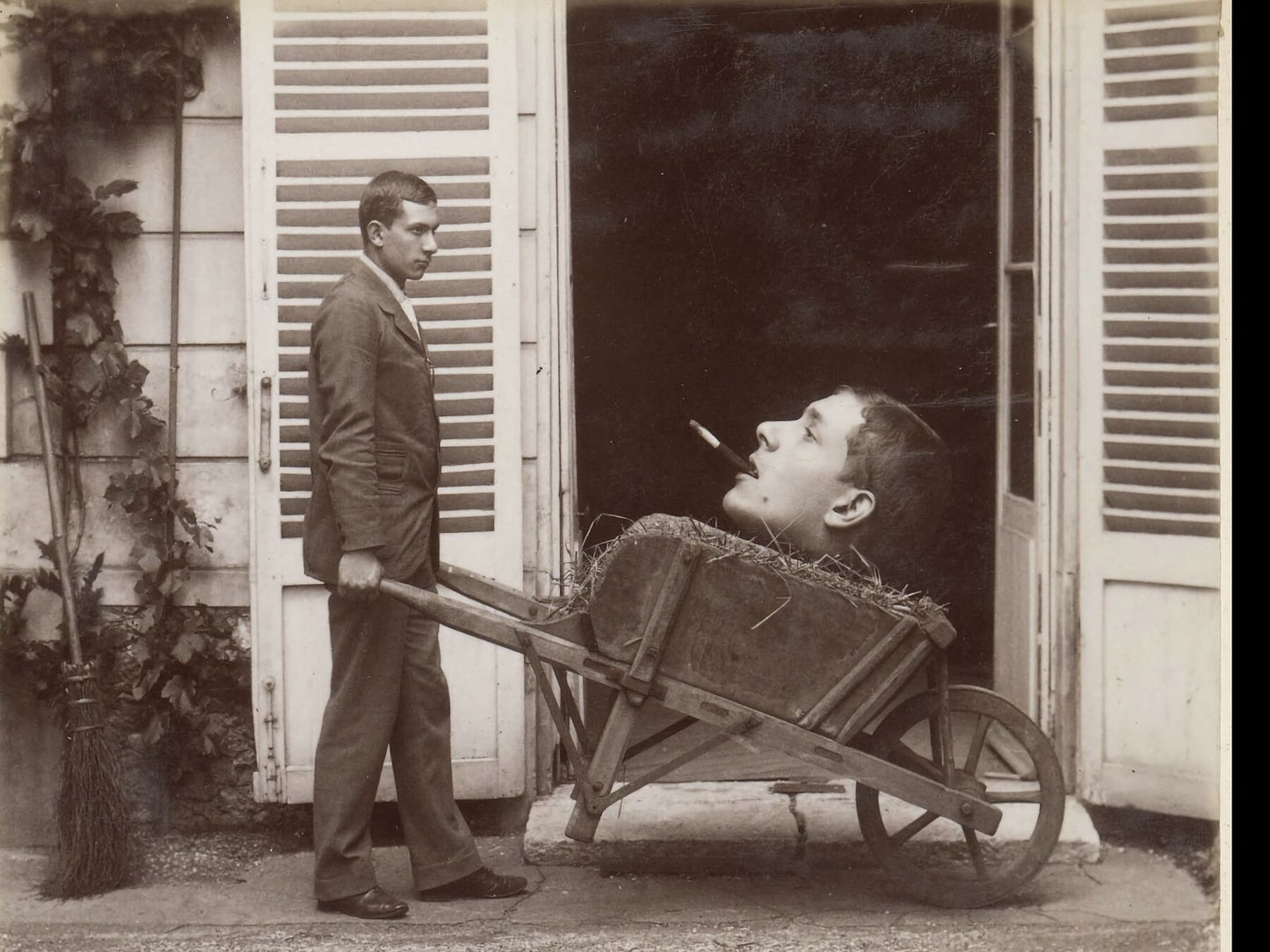 Man Carries (Mounted) Head on Wheelbarrow - c. 1910
