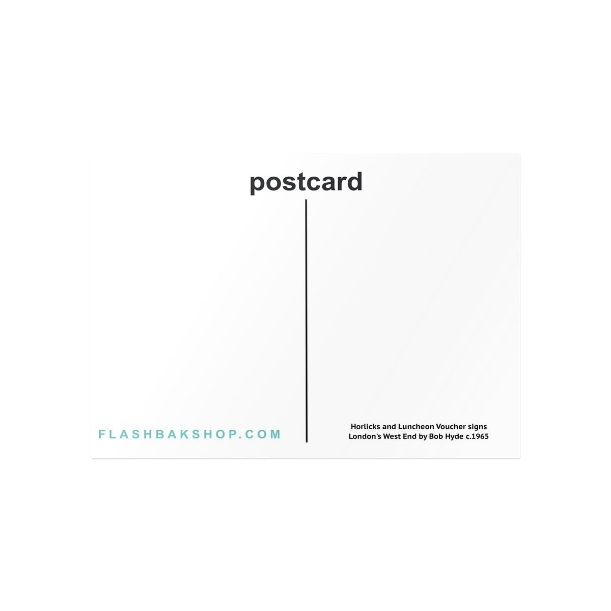 Horlicks and Luncheon Voucher signs London's West End by Bob Hyde c.1965 - Postcard
