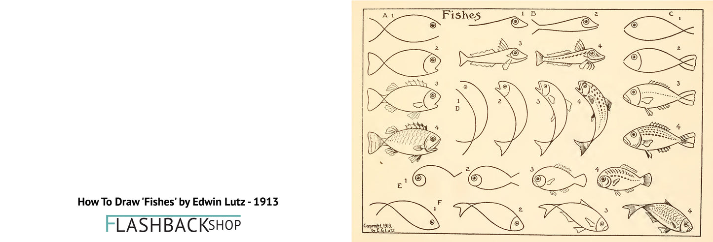 How To Draw 'Fishes' by Edwin Lutz, 1913 - Postcard