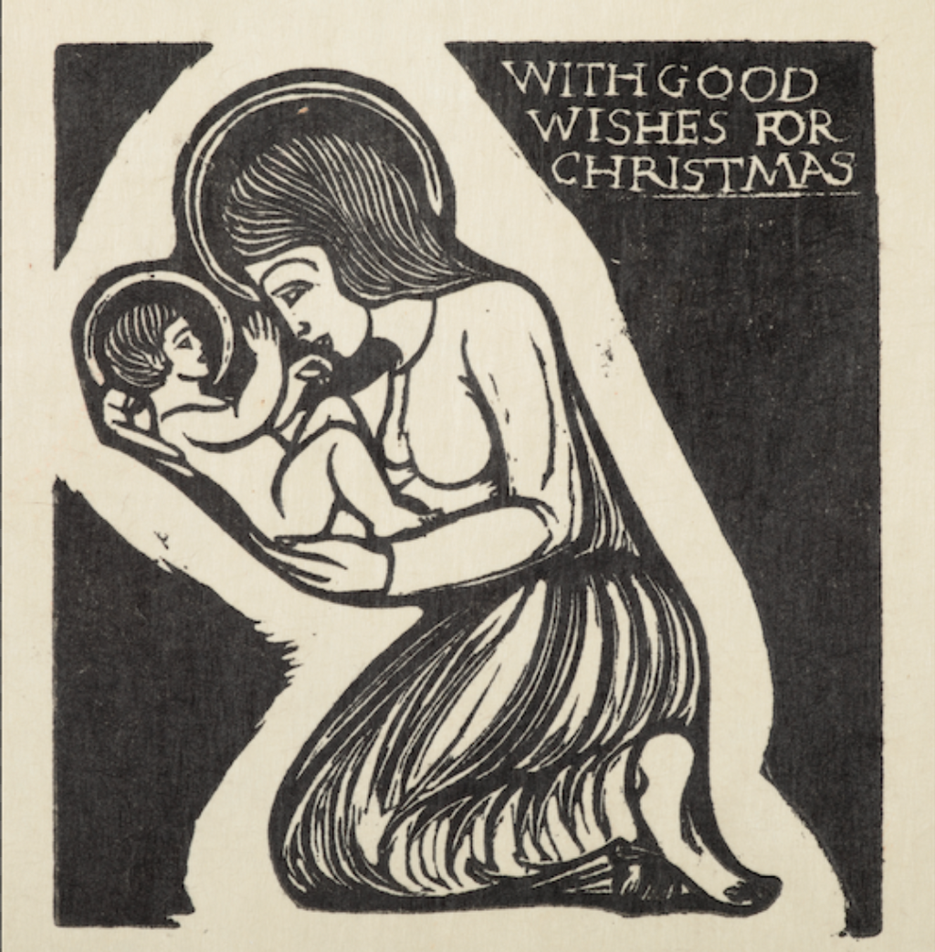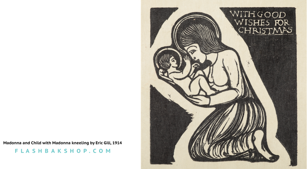 Madonna and Child with Madonna kneeling by Eric Gill, 1914 - Square Greetings Card