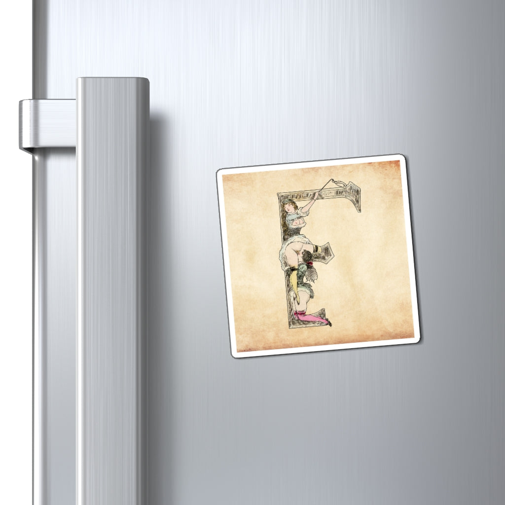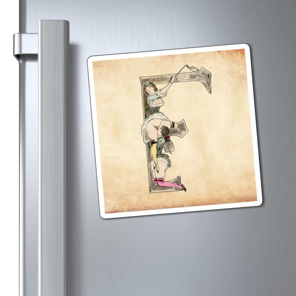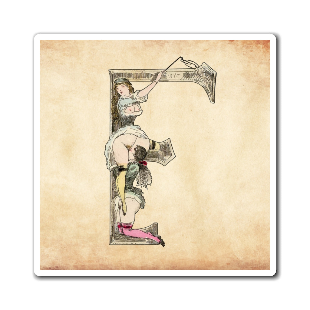 Magnet featuring the letter F from the Erotic Alphabet, 1880, by French artist Joseph Apoux (1846-1910).