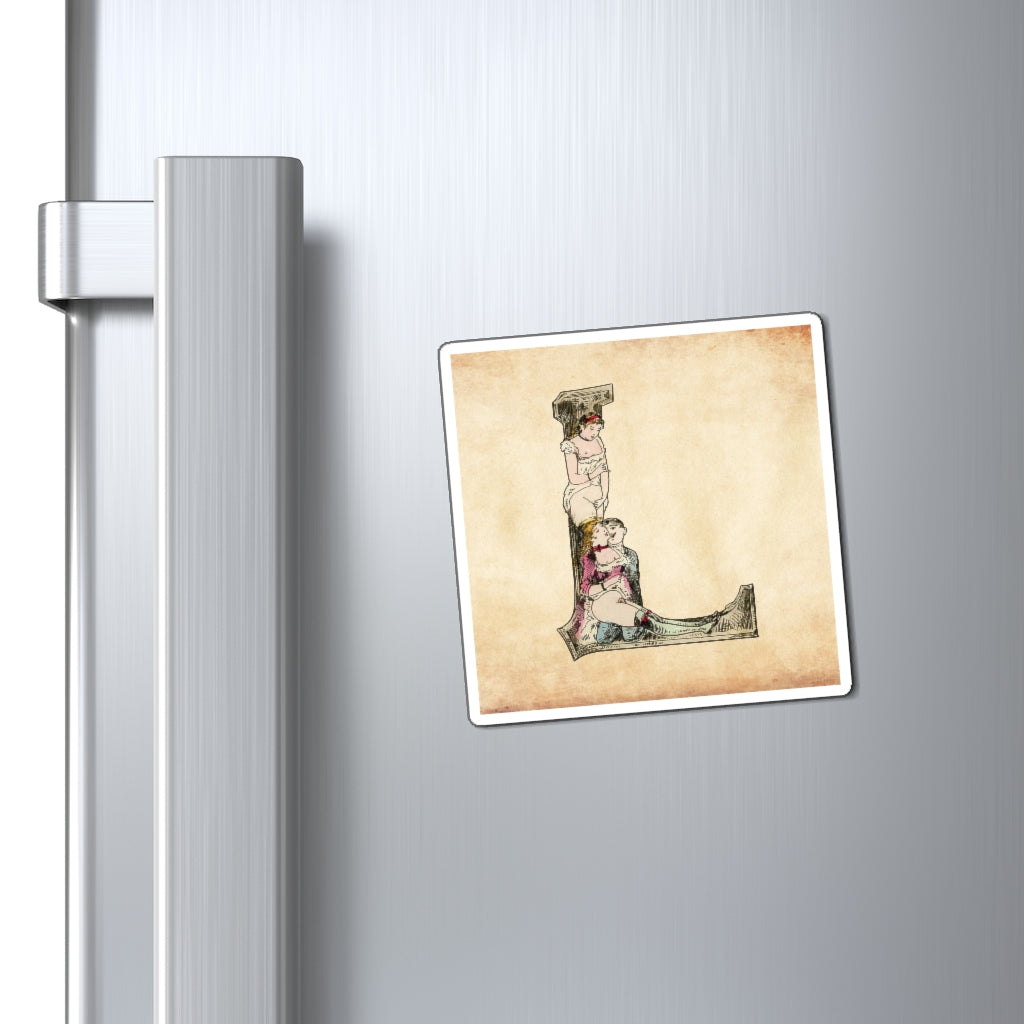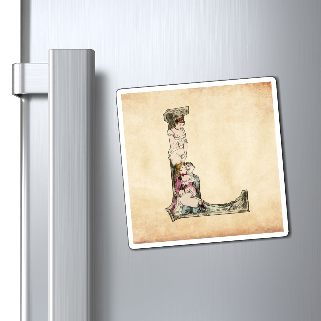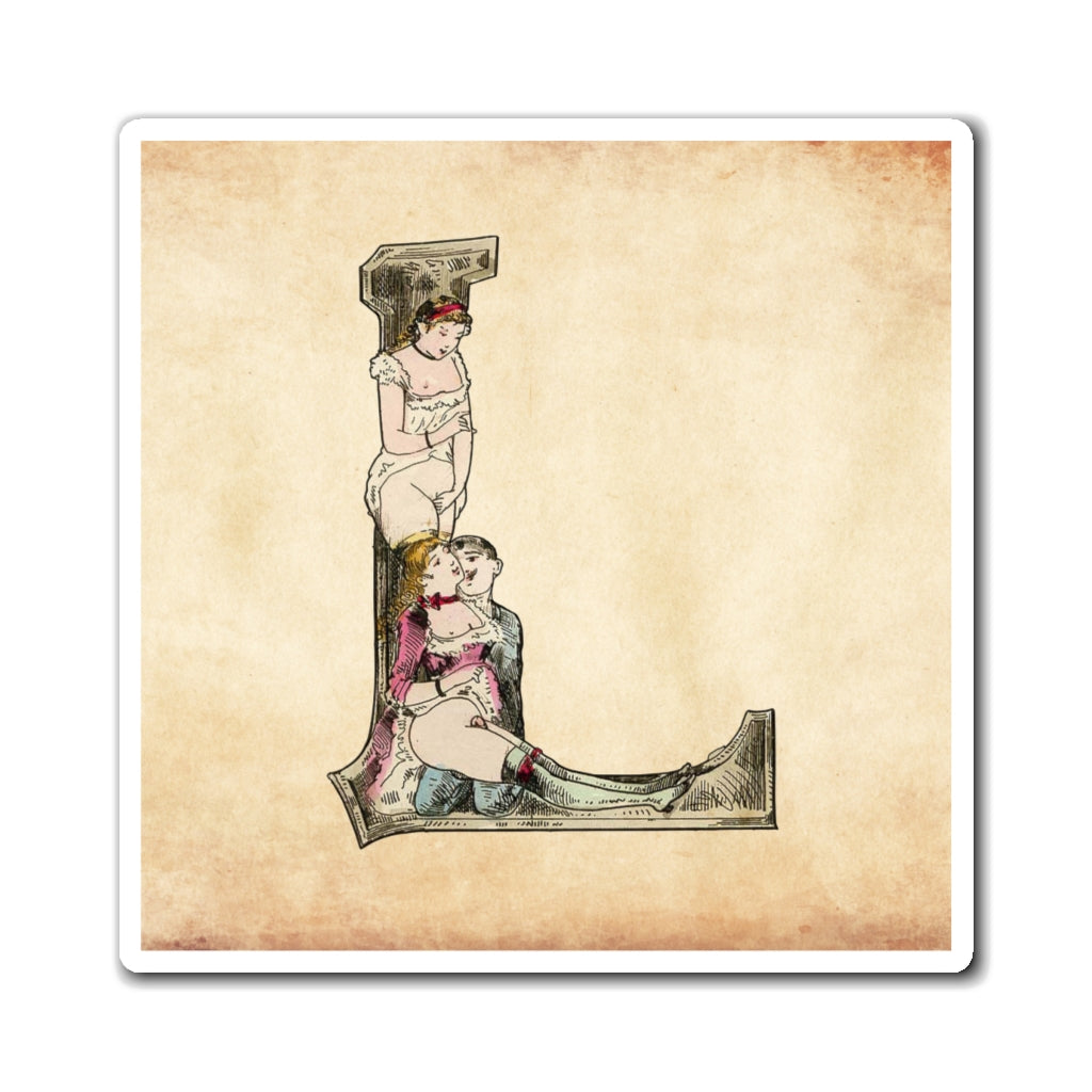 Magnet featuring the letter L from the Erotic Alphabet, 1880, by French artist Joseph Apoux (1846-1910).