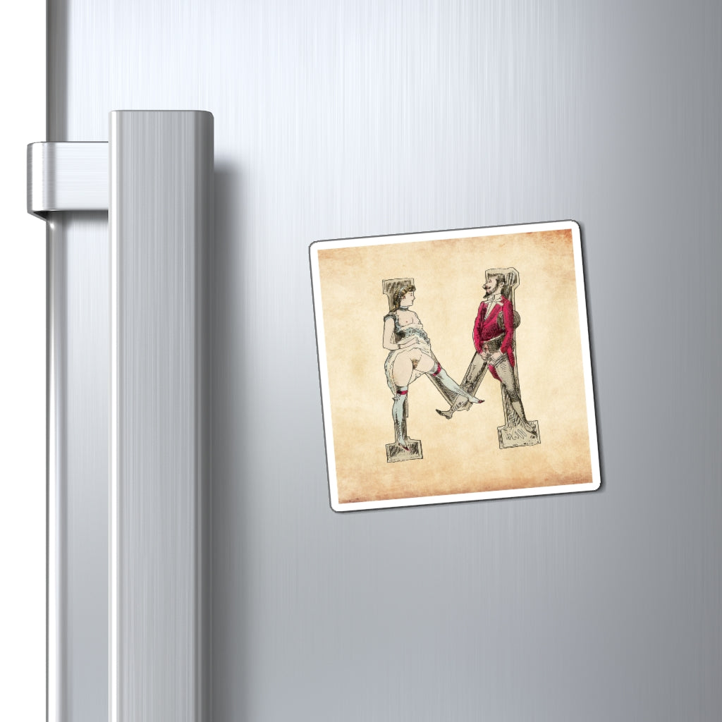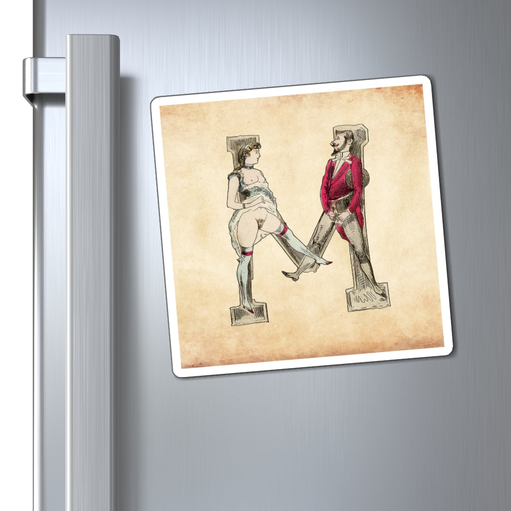 Magnet featuring the letter M from the Erotic Alphabet, 1880, by French artist Joseph Apoux (1846-1910).