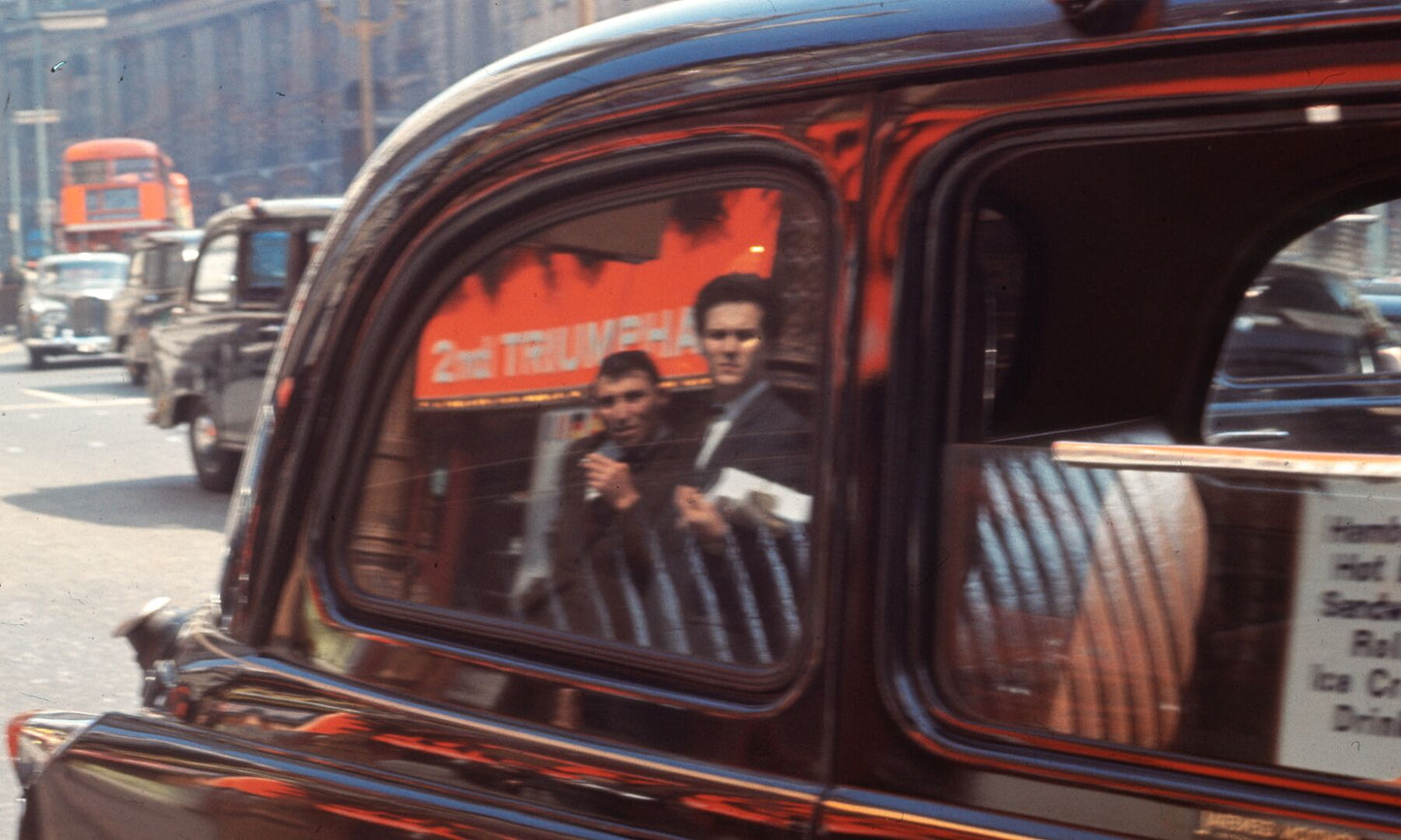 Two Men Reflected In A London Taxi by Bob Hyde - 1960s