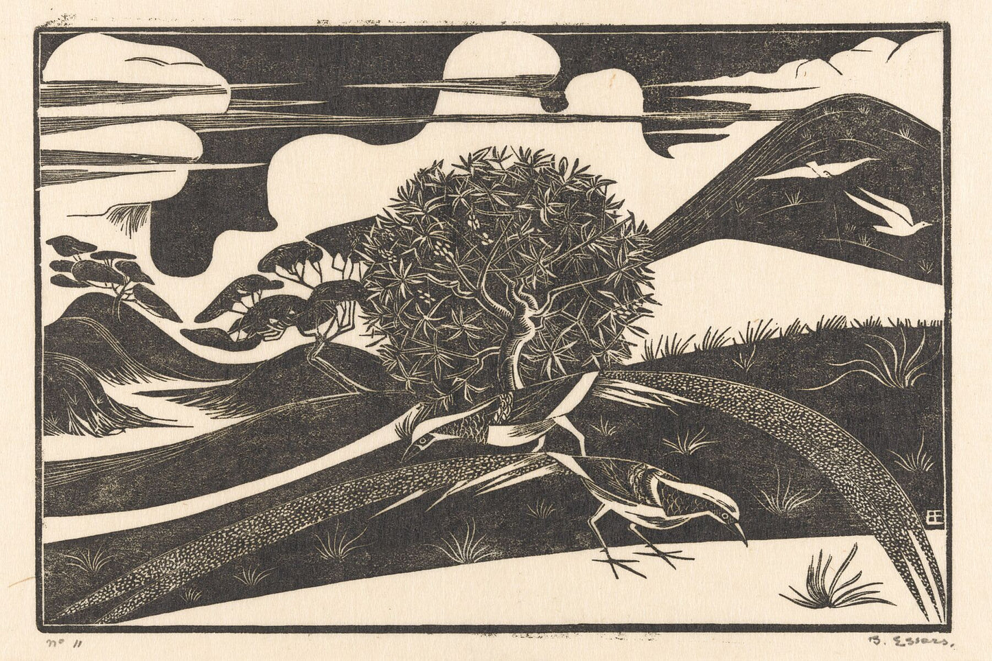 Two Pheasants in a Hilly Landscape by Bernard Essers - c. 1925