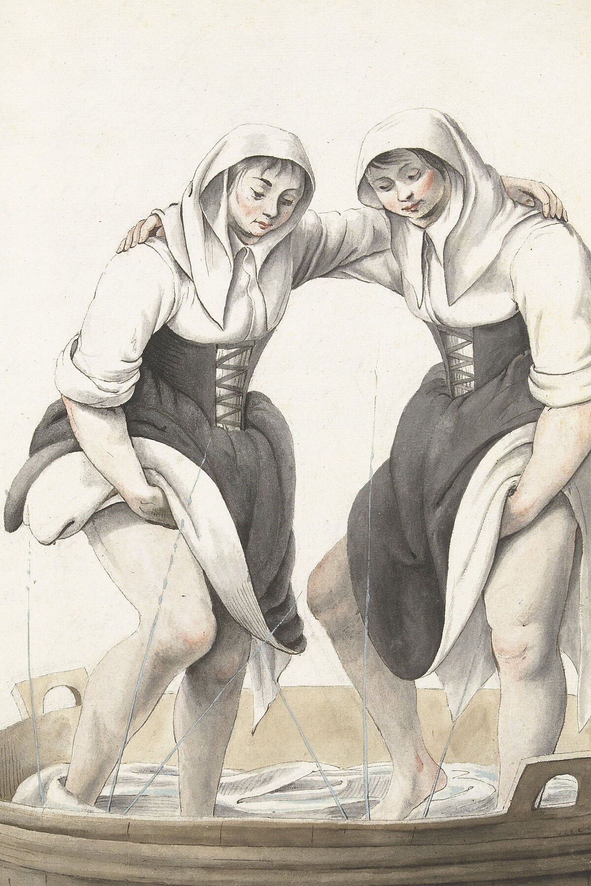 Two women tamping laundry, anonymous, c. 1652 - c. 1653