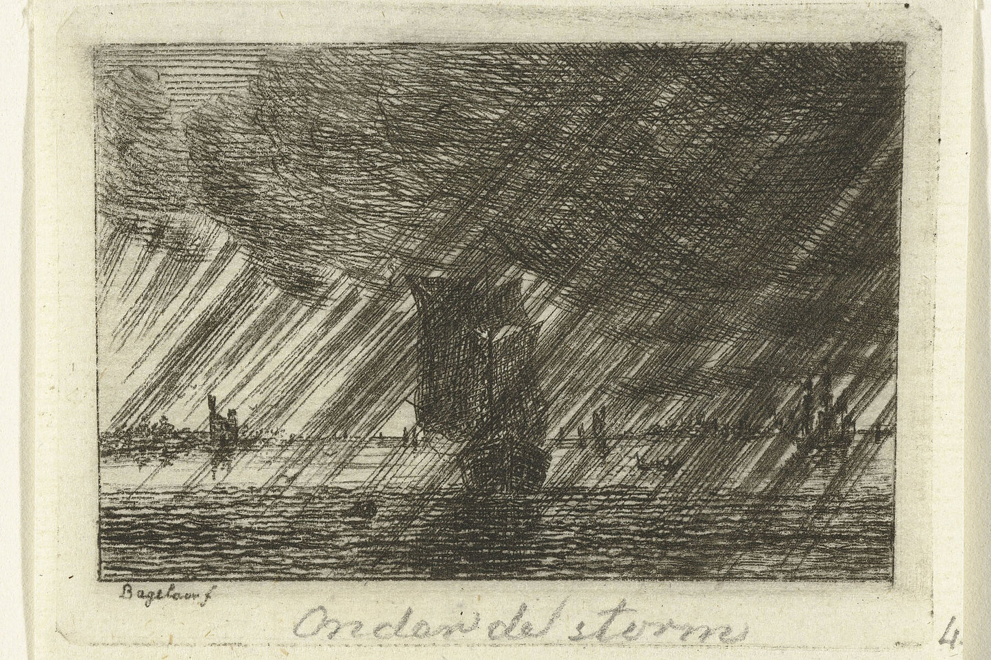 Water landscape with sailing ship by Ernst Willem Jan Bagelaar, 1798 - 1837